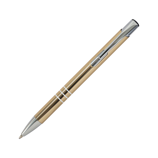 Długopis aluminiowy. Wyposażony w niebieski wkład.